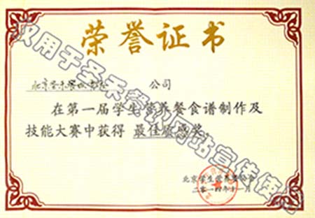 第一届学生营养餐食谱制作及技能大赛最佳质感奖